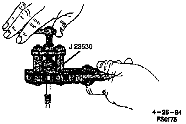 e. Insert proper pin of gage into tubing and swing strap back in closed position. Tighten compression screw until gage bottoms on tool, then unscrew compression screw and swing strap to one side. Remove gage.