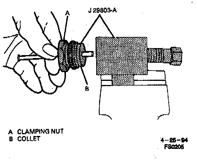 e. Slide clamping nut over tubing into correct collet. Leave approximately 19 mm (.750 inch) of tubing extending out collet Insert into tool body. Tube end must contact face of forming mandrel.