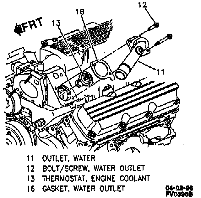 9. Engine coolant thermostat (13). Clean gasket surfaces of water outlet and upper intake manifold.