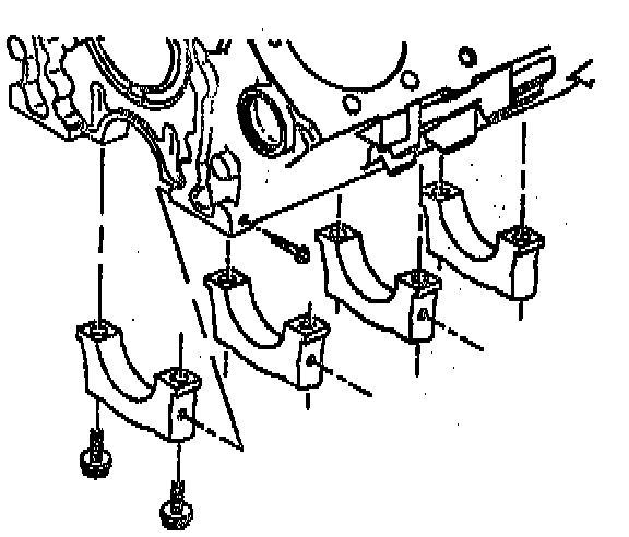 NOTE: Begin to tighten the bearing cap bolts by hand. Tighten all of the bearing caps in equal increments. Do not tighten one cap completely at a time.