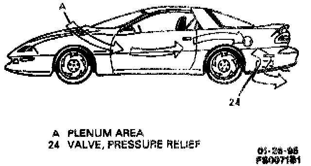 After being warmed or cooled to the desired temperature, the air is discharged from the outlets. When all windows are closed, the addition of outside air builds a slight positive pressure within the passenger compartment. The pressure forces stale air to leave the vehicle through a pressure relief valve, near the left side quarter panel, behind the rear fascia.