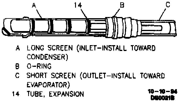 When system diagnostics indicate a restricted evaporator tube orifice, it may not be necessary to replace the tube. Metal chips, flakes or slivers found on the screen may be removed with compressed air and the evaporator tube orifice may be reused if: