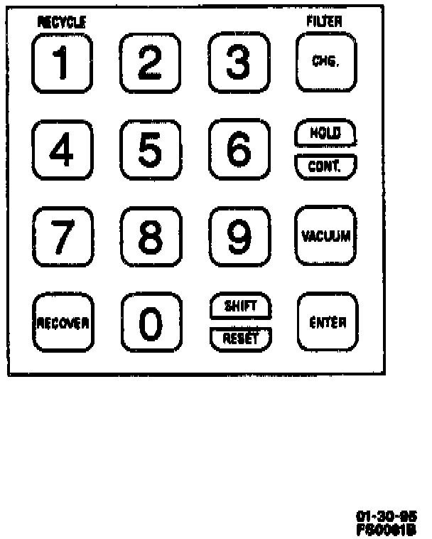 ^ FILTER - automatically recovers and evacuates to 57 kPa (17 inches Hg) vacuum from the filter and low side of the unit.