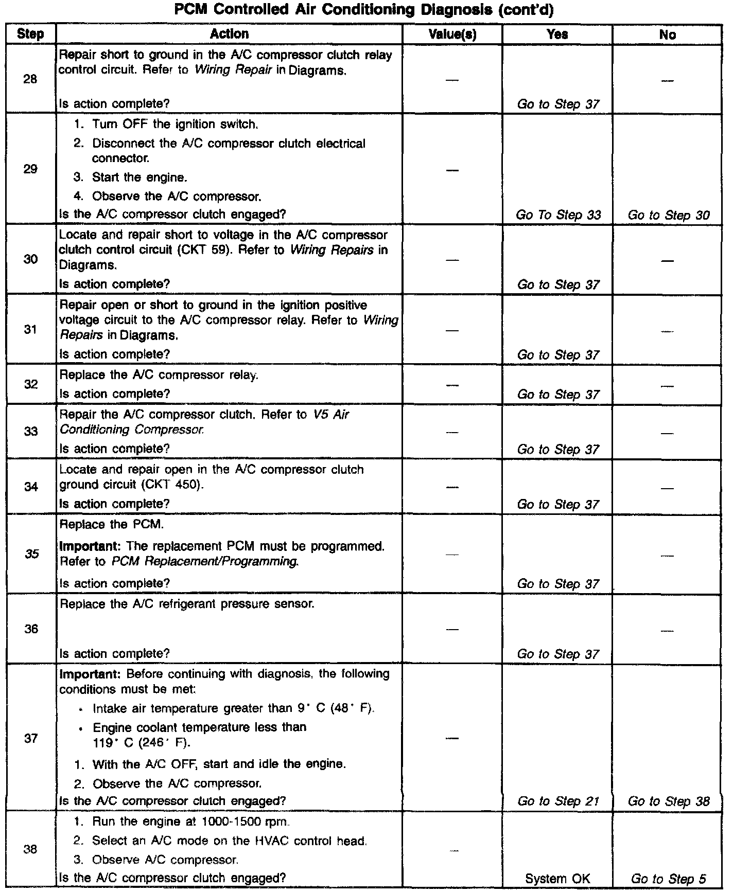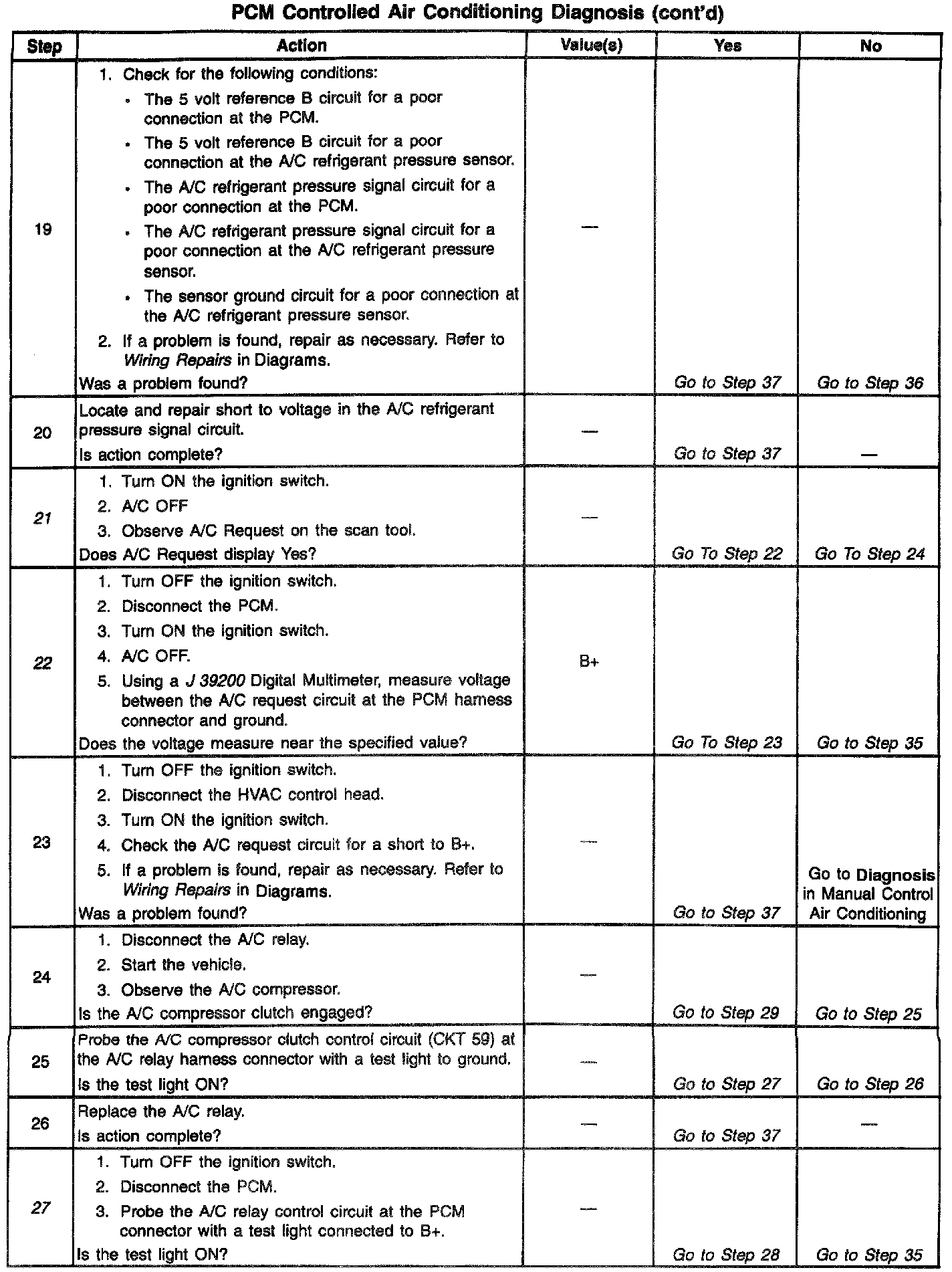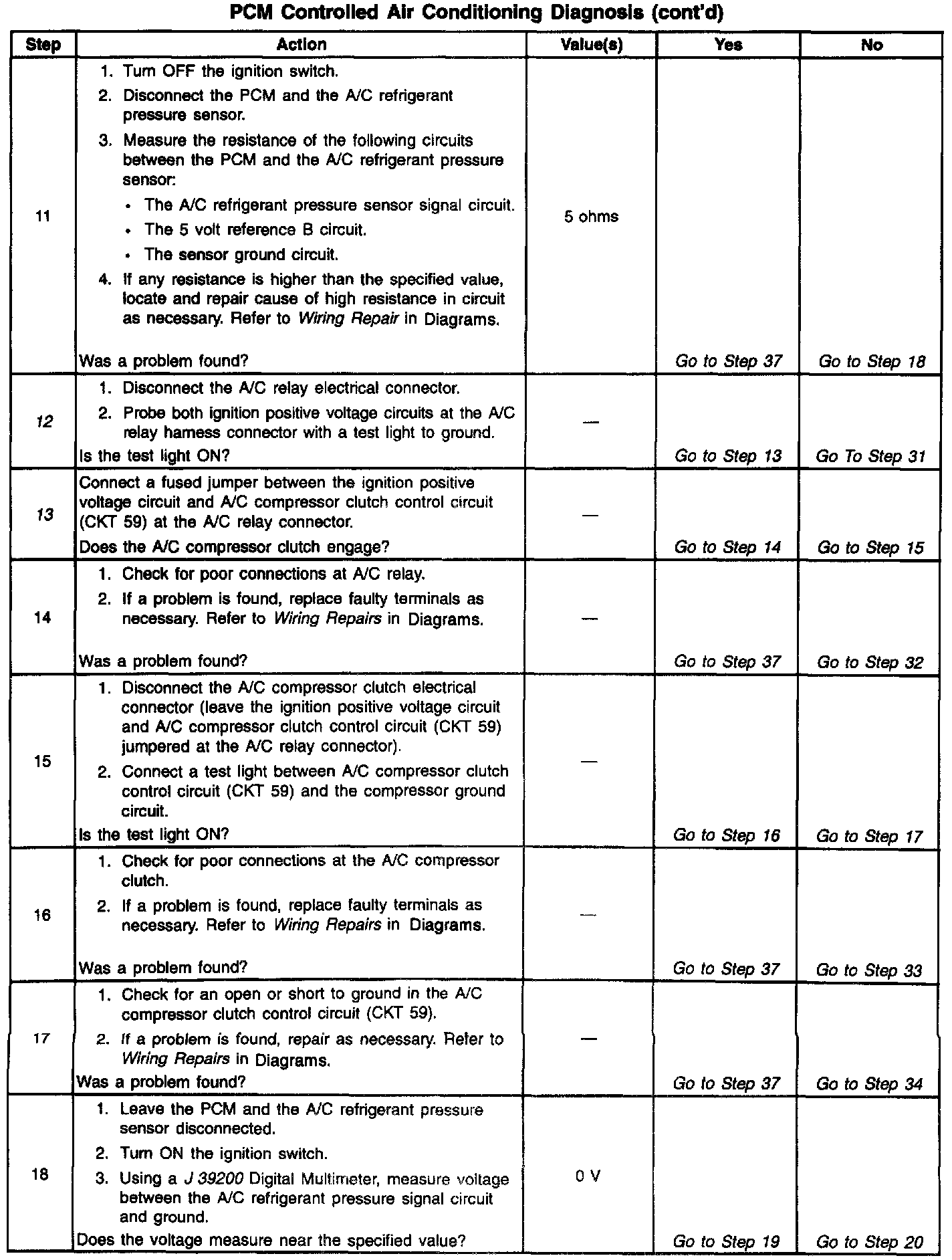 Number(s) below refer to Step number(s) on the diagnostic table: