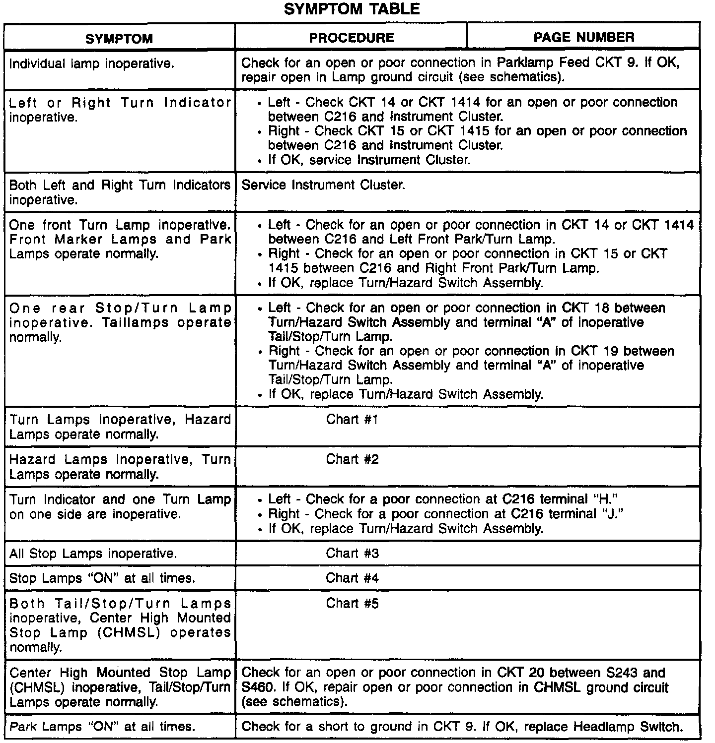 A Symptom Table - Exterior Lights