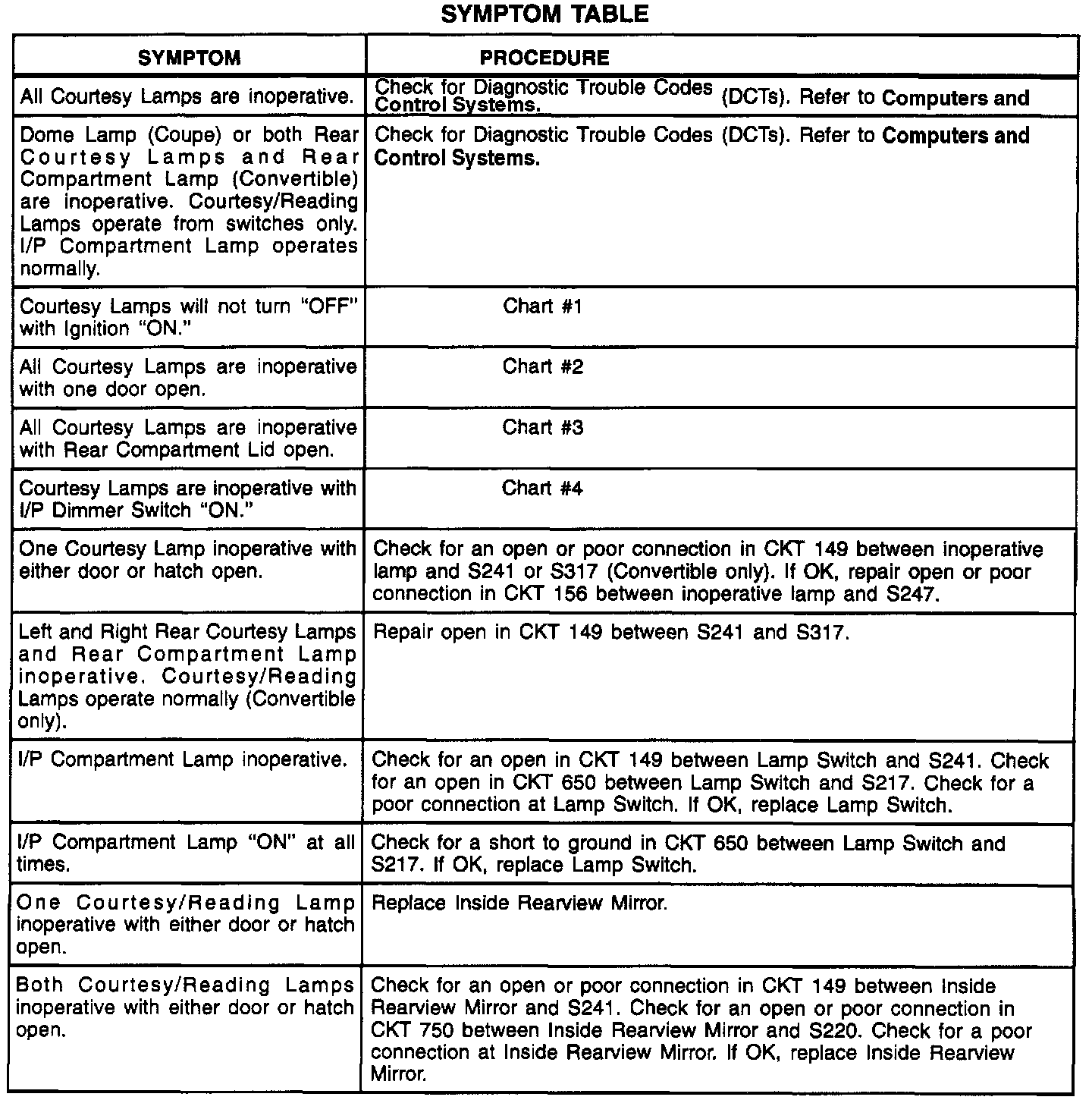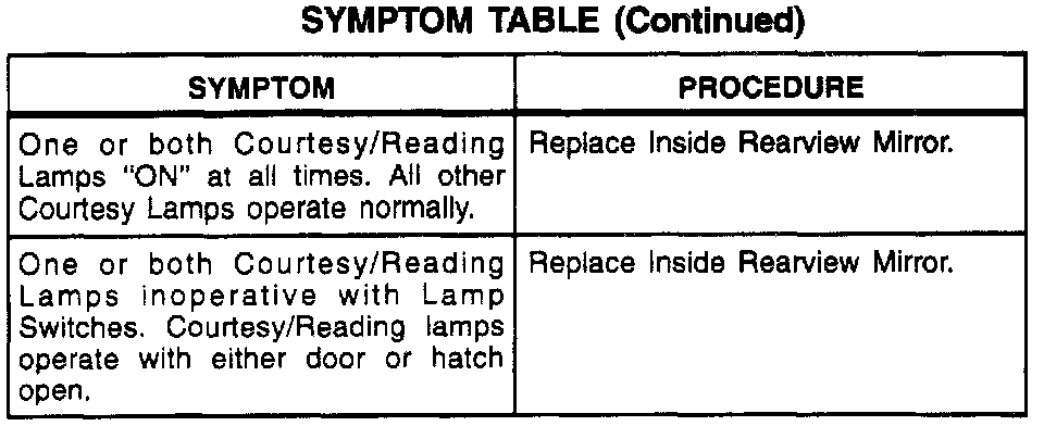 A Symptom Table - Interior Lights