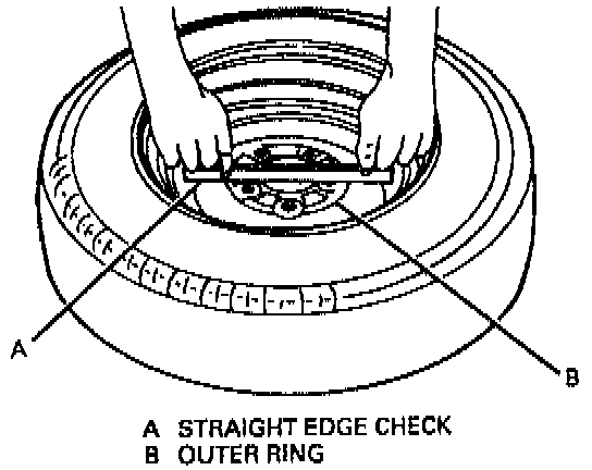 1. Place straight edge (about eight to nine inches long) with both hands on inboard mounting surface of wheel.