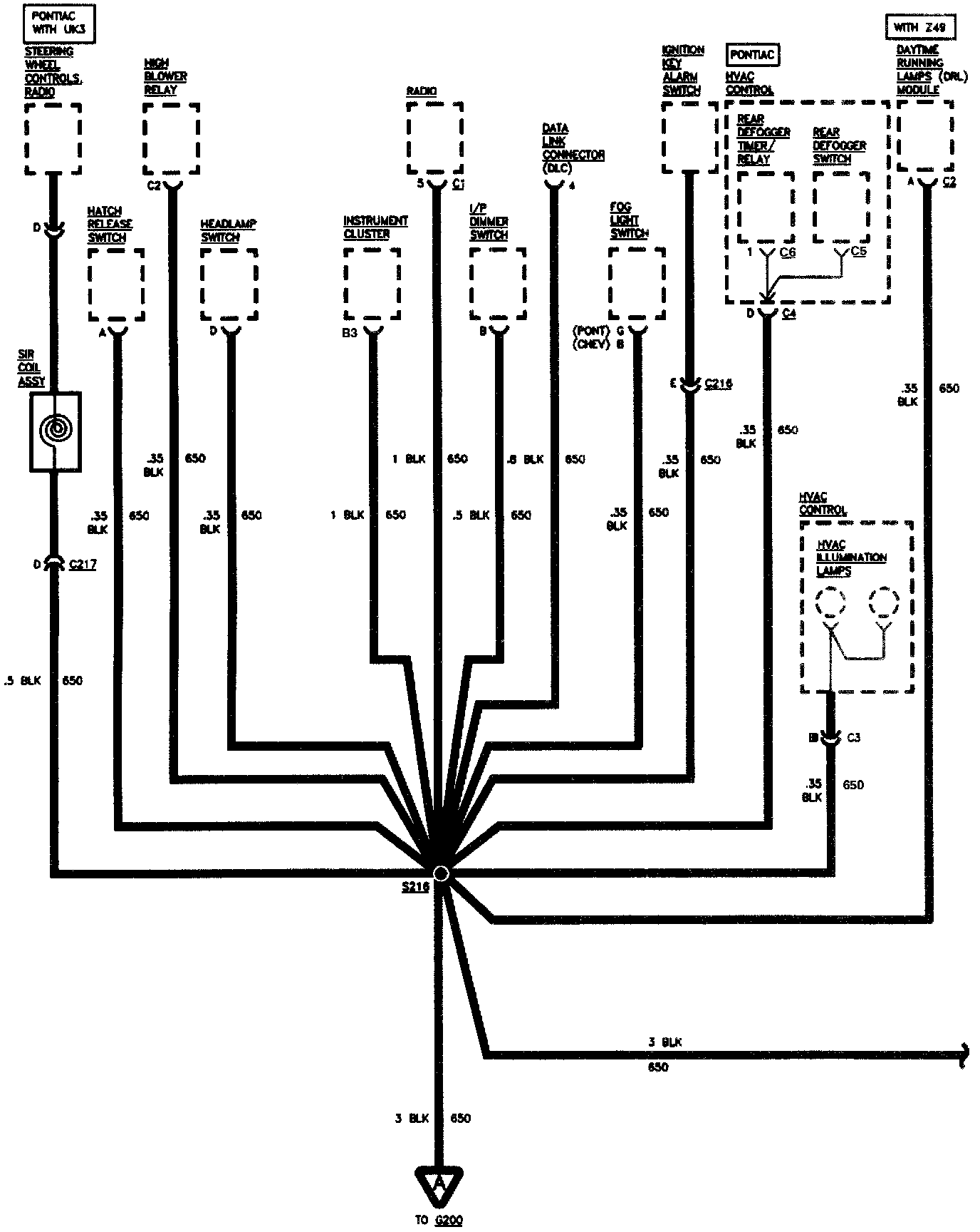 Daytime Running Lamps, HVAC Control Assembly, Light Switches, And Rear Defogger: