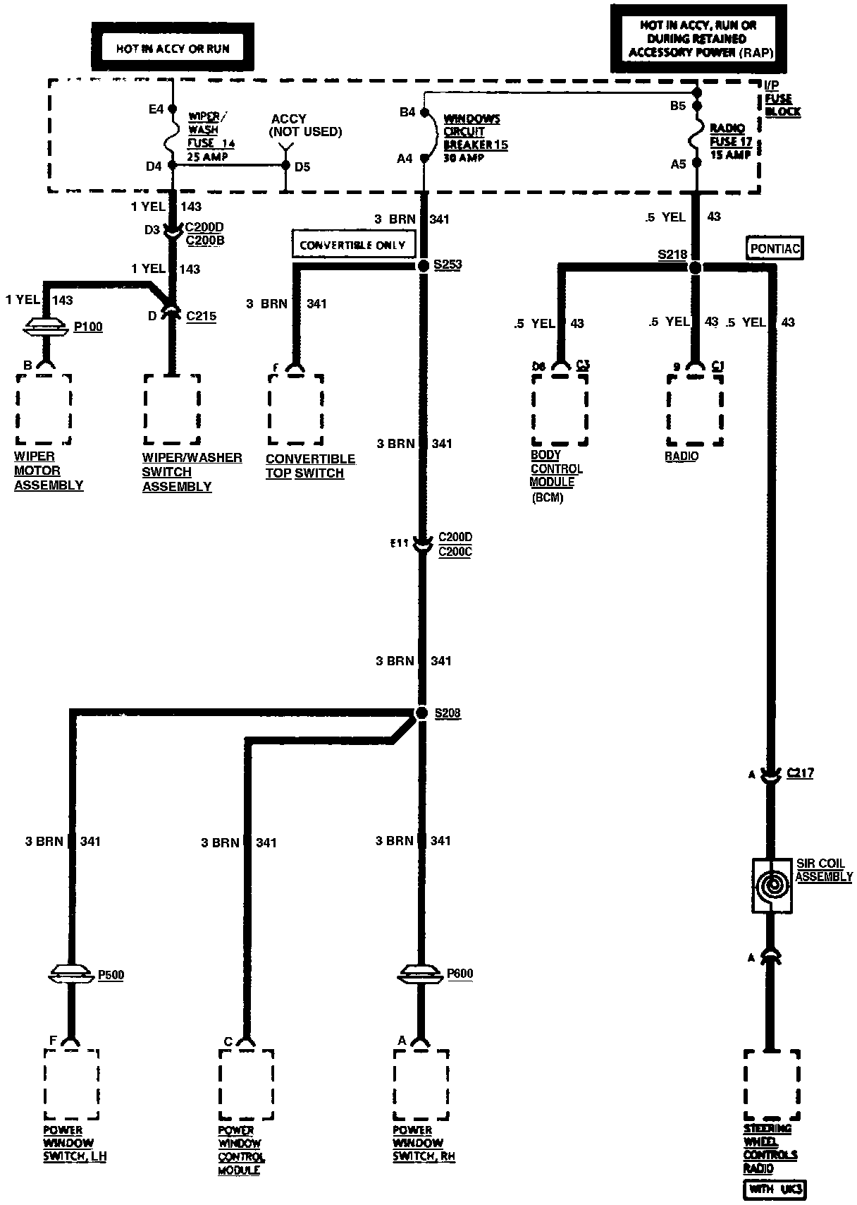 I/P Fuses 14, 17 And Windows Circuit Breaker 15: