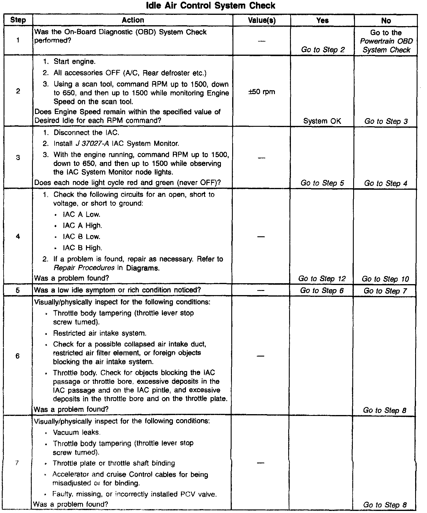 - Check for a sticking throttle plate. Also inspect the IAC passage for deposits or objects which will not allow the IAC pintle to fully extend.