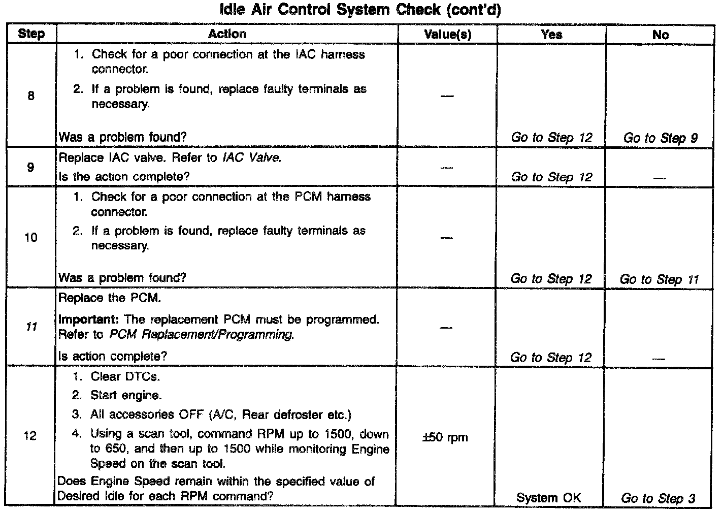 - Poor connection at PCM or IAC motor. Inspect harness connectors for backed out terminals, improper mating, broken locks, improperly formed or damaged terminals, and poor terminal to wire connection.
