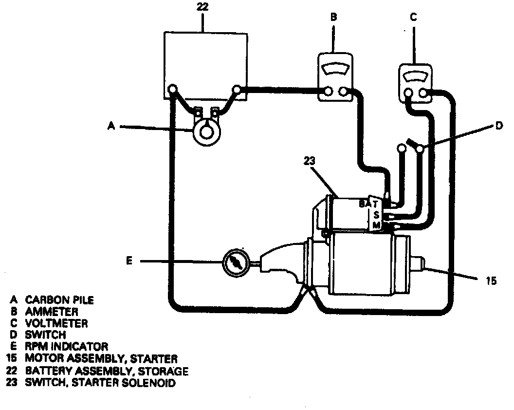 1. Rated current draw and no-load speed indicates normal starter motor condition.