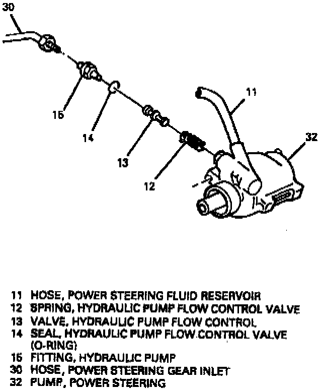 1. Valve spring (12) and flow control valve (13) to pump (32).