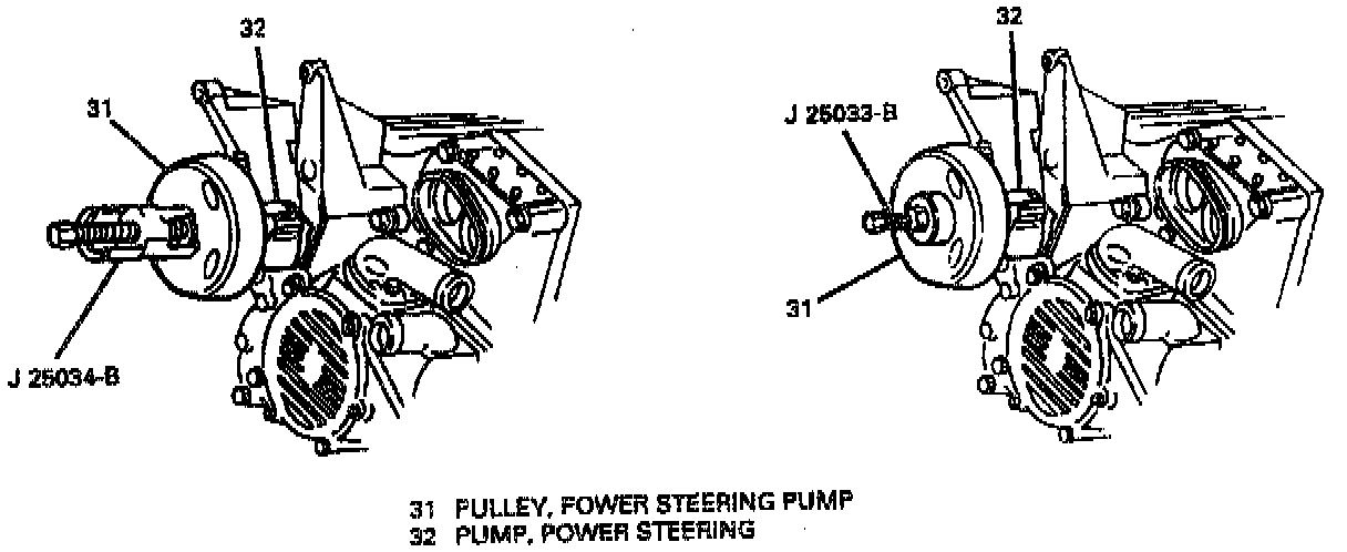 11. Pulley (31) from pump (32) using J 25034-B.