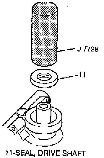 2. Drive shaft seal (11) into pump housing (10) with tool J 7728.