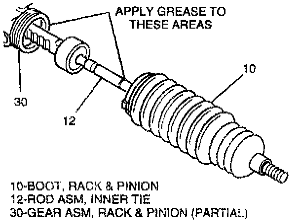 2. Apply grease to inner tie rod (12) and gear assembly (30) prior to boot installation.