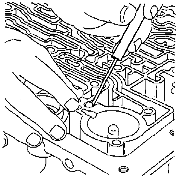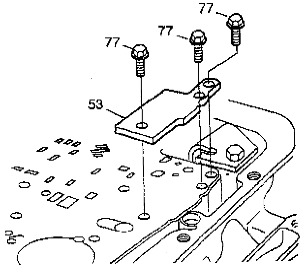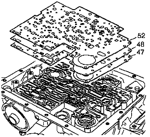 3. Place the spacer plate to case gasket (identified by a "C") and the spacer plate to valve body gasket (identified by a "V") on the spacer plate. Retain gaskets on the spacer plate with Transjel J 36850 or equivalent.
