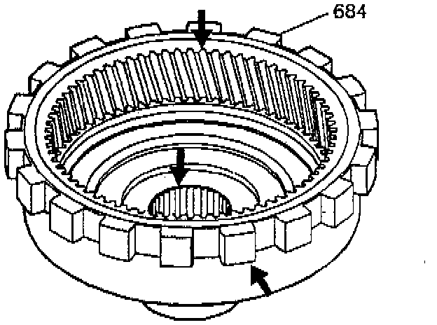 3. Inspect the internal reaction gear and the internal reaction gear support for proper assembly, stripped splines, cracks, teeth, and lug damage.