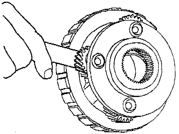 a. Without touching the pinion gears, place a bushing or an output shaft sleeve onto the bearing race and turn it with the palm of your hand.