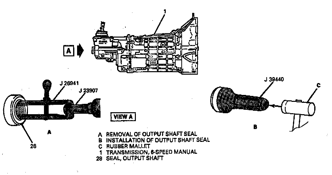 2. Output shaft seal (28 or 29) using J 26941 with J 23907.