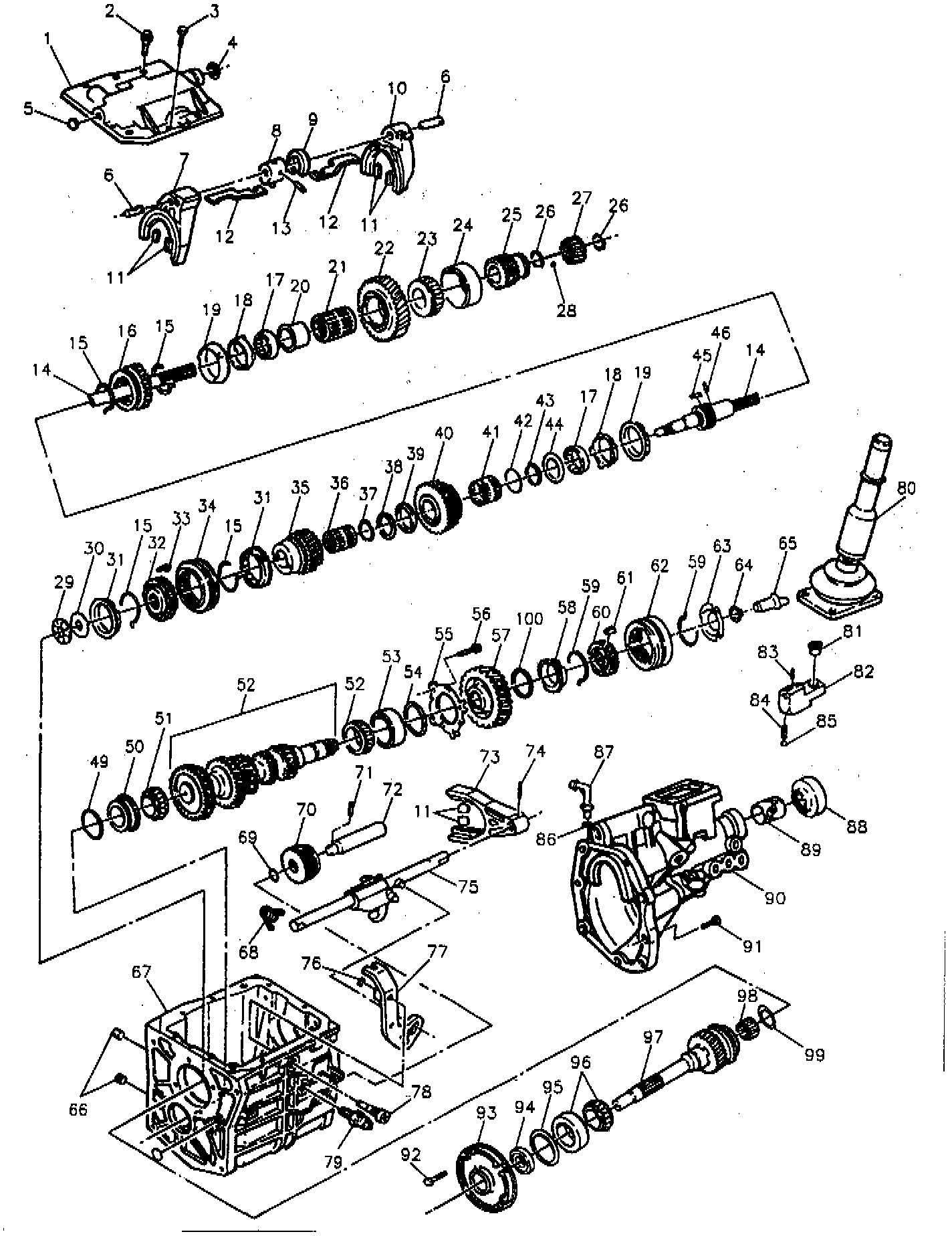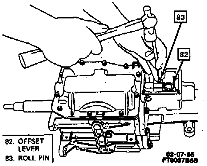 28. Roll pin in offset lever and shift rail.