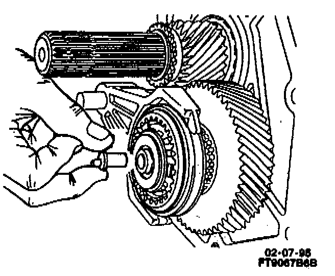 - Turn transmission case on end, and mount a dial indicator on extension housing with indicator on the end of mainshaft.
