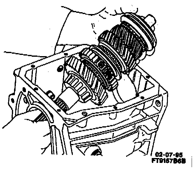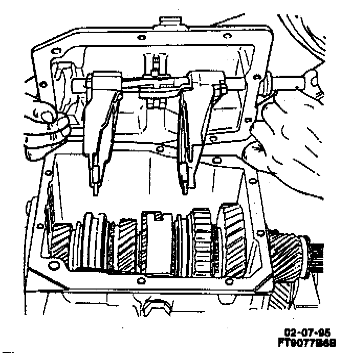 - Lower cover onto case while aligning shift forks and synchronizer sleeves.