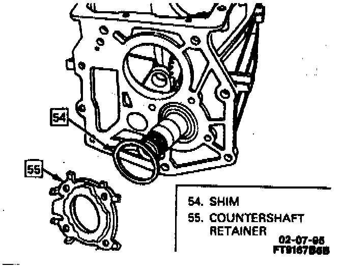 8. Countershaft retainer (without shims) to transmission housing.