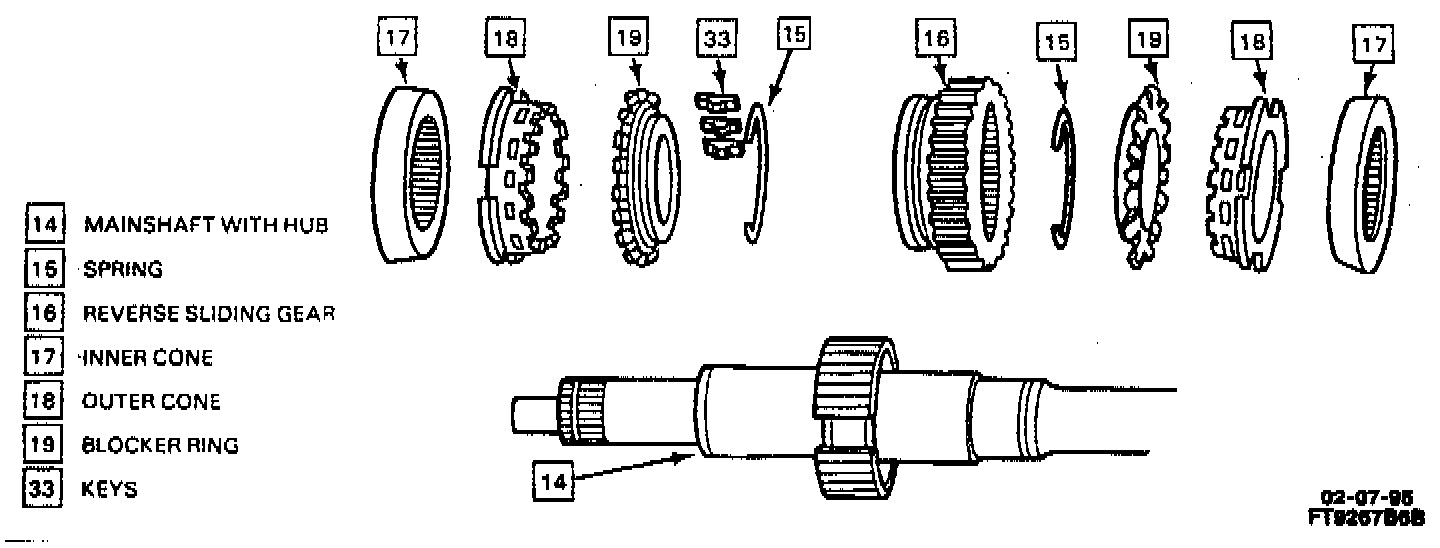 NOTICE: The Synchronizer hubs and sliding sleeves are a selected assembly and should be kept together as originally assembled, but the keys and springs may be replaced if worn or broken.