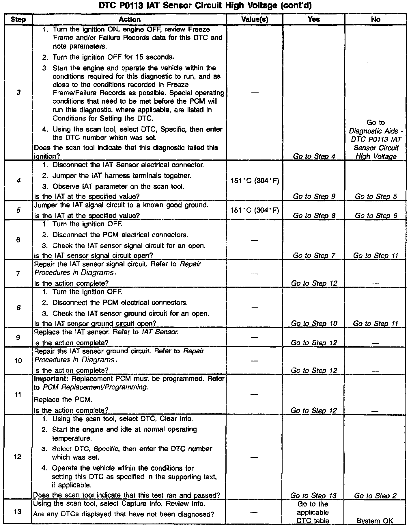 4. If the intake air temperature goes above 150°C (302°F), indicates the PCM and IAT wiring are OK.
