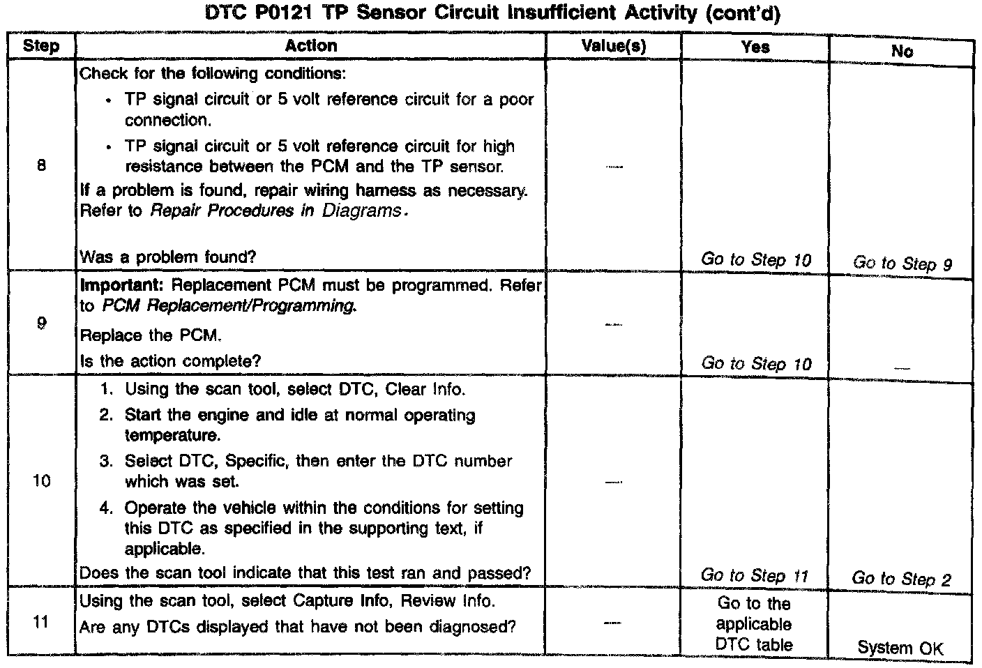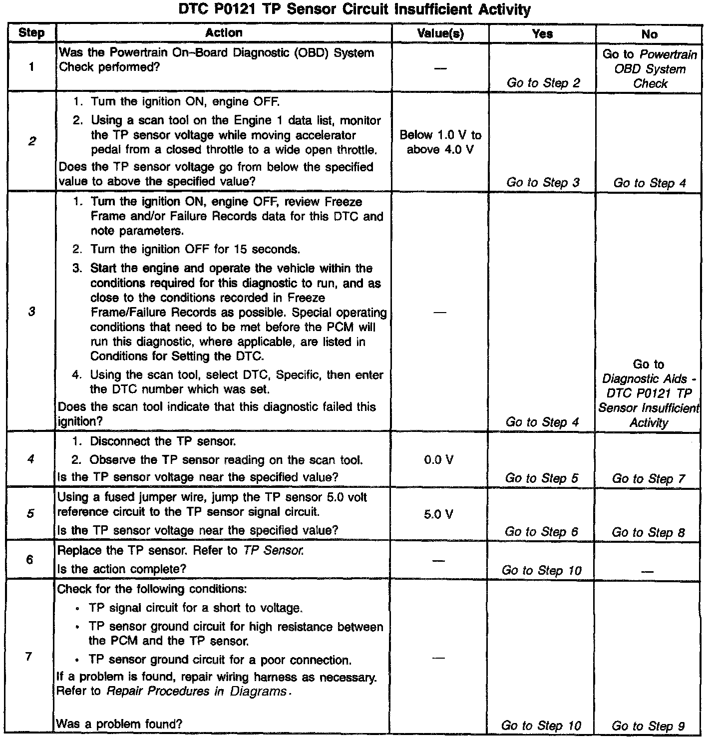 - If it is determined that the DTC intermittently, performing the DTC P1121 diagnostic table may isolate the cause of the fault.