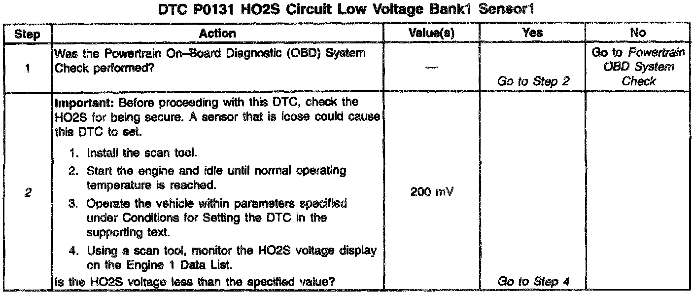 - HO2S signal voltage remains below 200 mV for 30 seconds