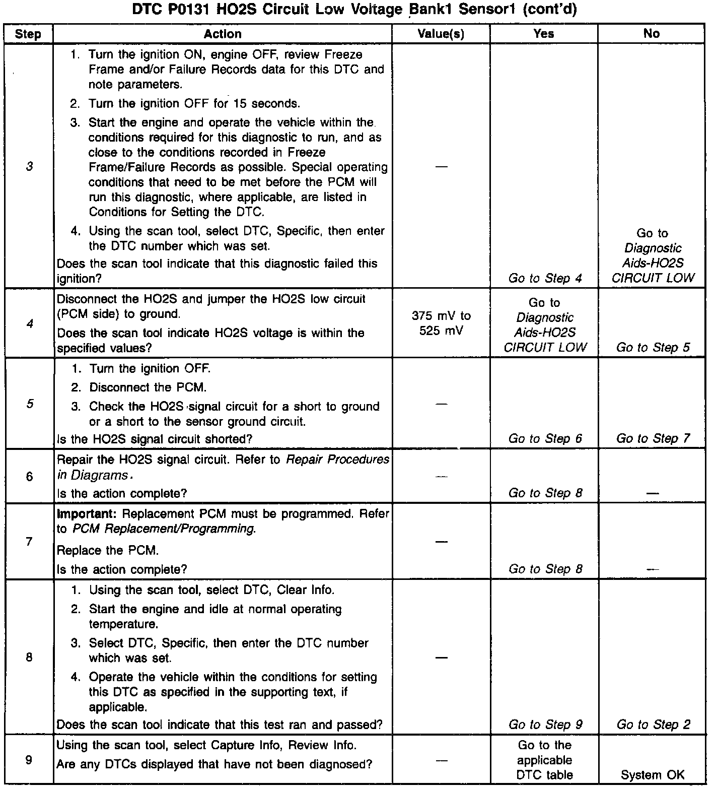 Number(s) below refer to step numbers on the diagnostic table.