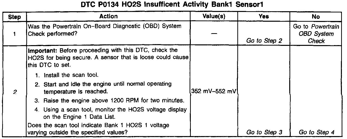 - HO2S signal voltage steady between 352 vM and 552 vM for 45 seconds.