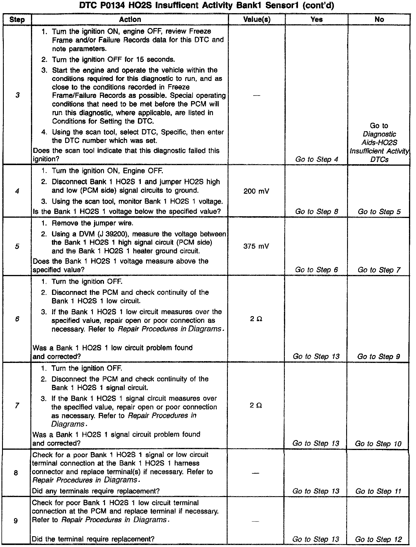 4. If the scan tool indicates the HO2S voltage goes below 200 vM, indicates the HO2S circuits and PCM are OK.