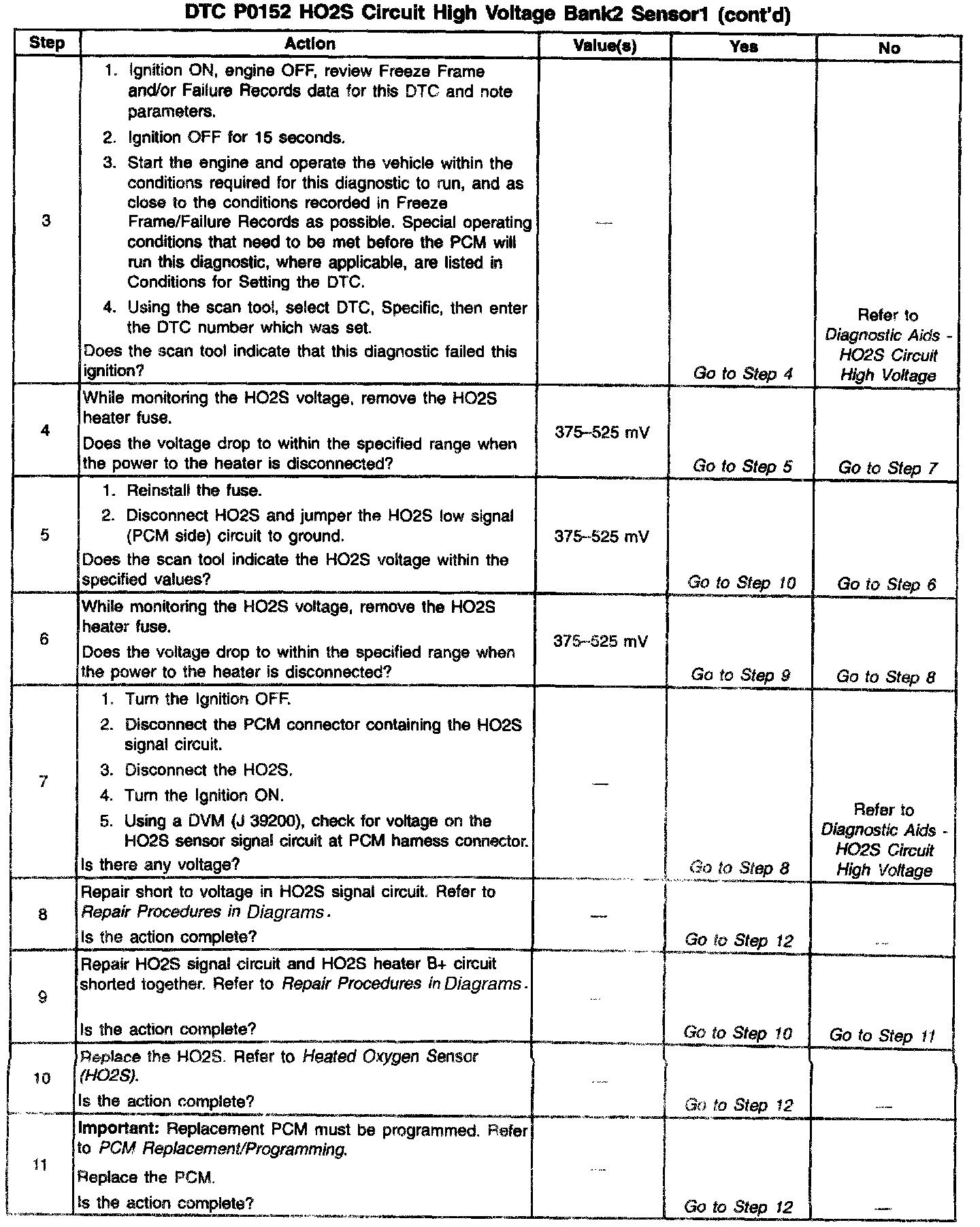 The PCM supplies a voltage of about 450 vM between the HO2S high and low signal circuits. The oxygen sensor varies the voltage over a range from about 1000 vM when the exhaust is rich, down through about 10 vM when exhaust is lean.