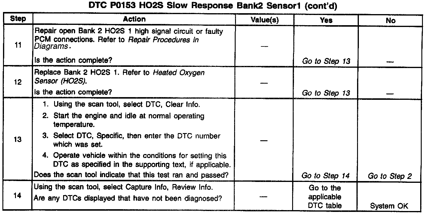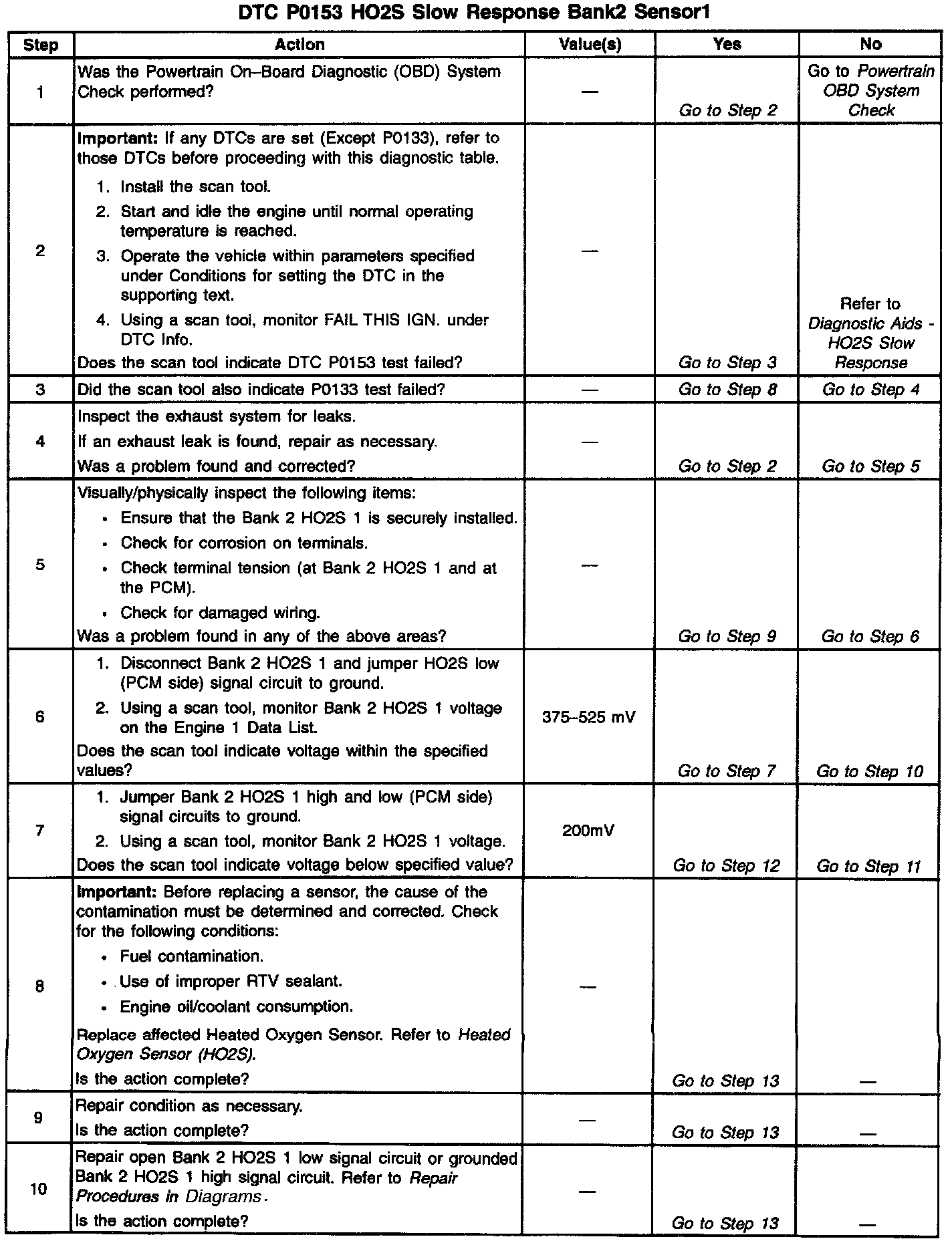A lean to rich transition is determined when the HO2S voltage changes from less than 300 vM to greater than 600 vM. A rich to lean transition is determined when the HO2S voltage changes from more than 600 vM to less than 300 vM. An HO2S that responds too slowly is most likely defective and should be replaced.