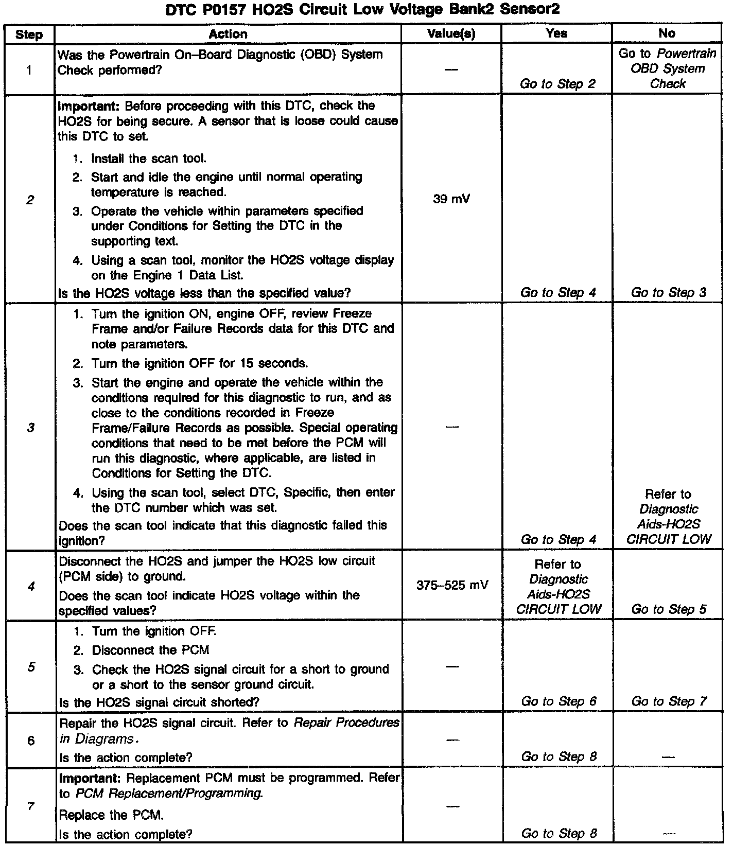 Number(s) below refer to step numbers on the diagnostic table.