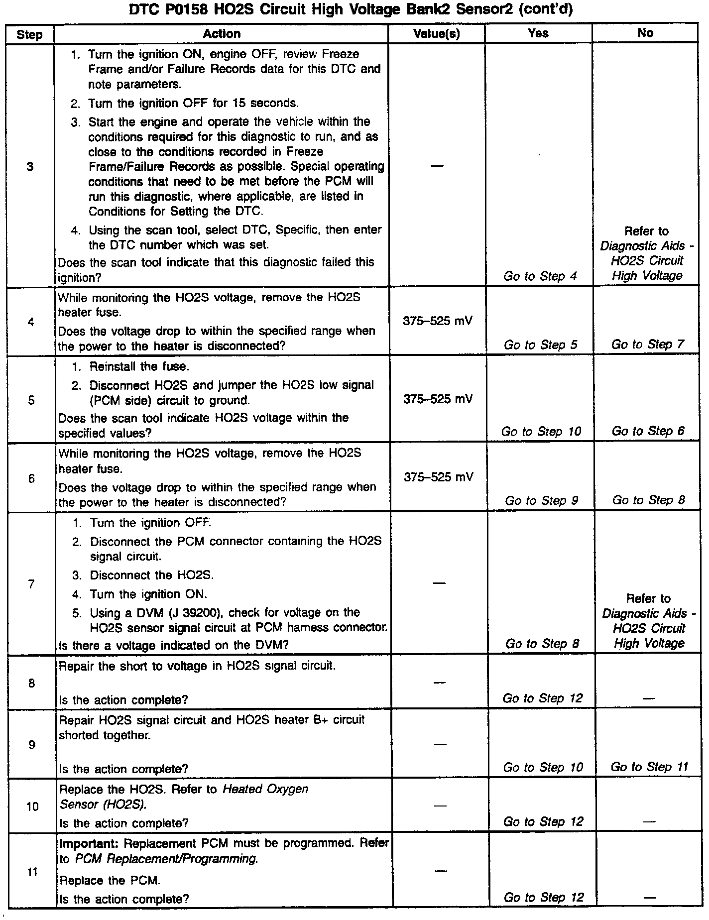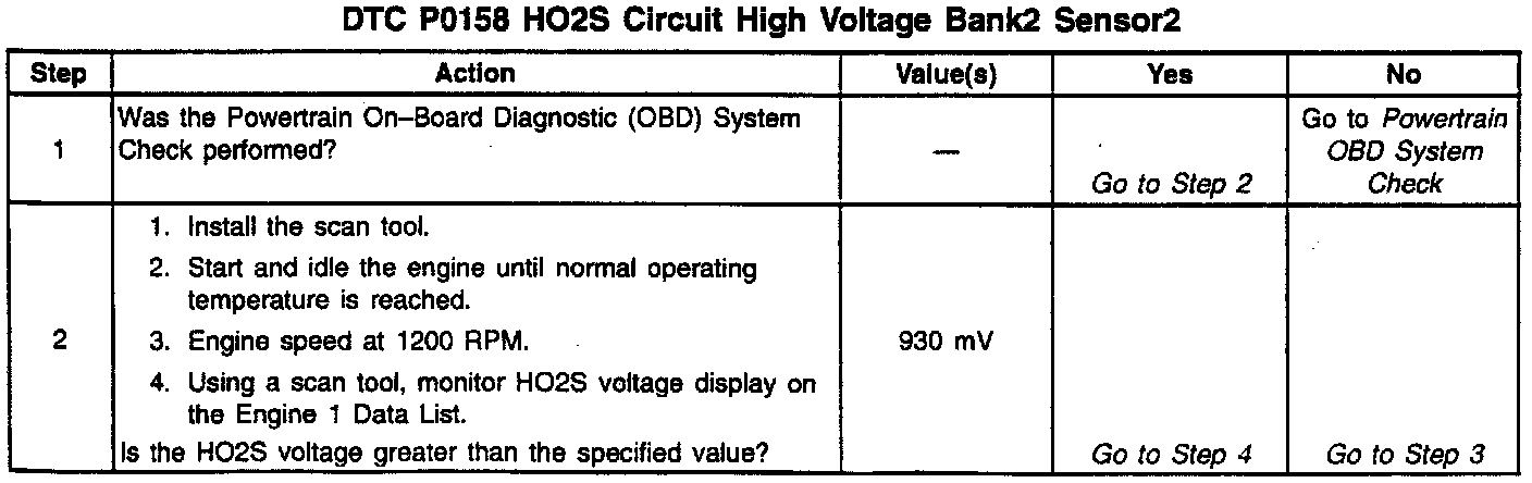 The PCM supplies a voltage of about 450 vM between the HO2S high and low signal circuits. The oxygen sensor varies the voltage over a range from about 1000 vM when the exhaust is rich, down through about 10 vM when exhaust is lean.