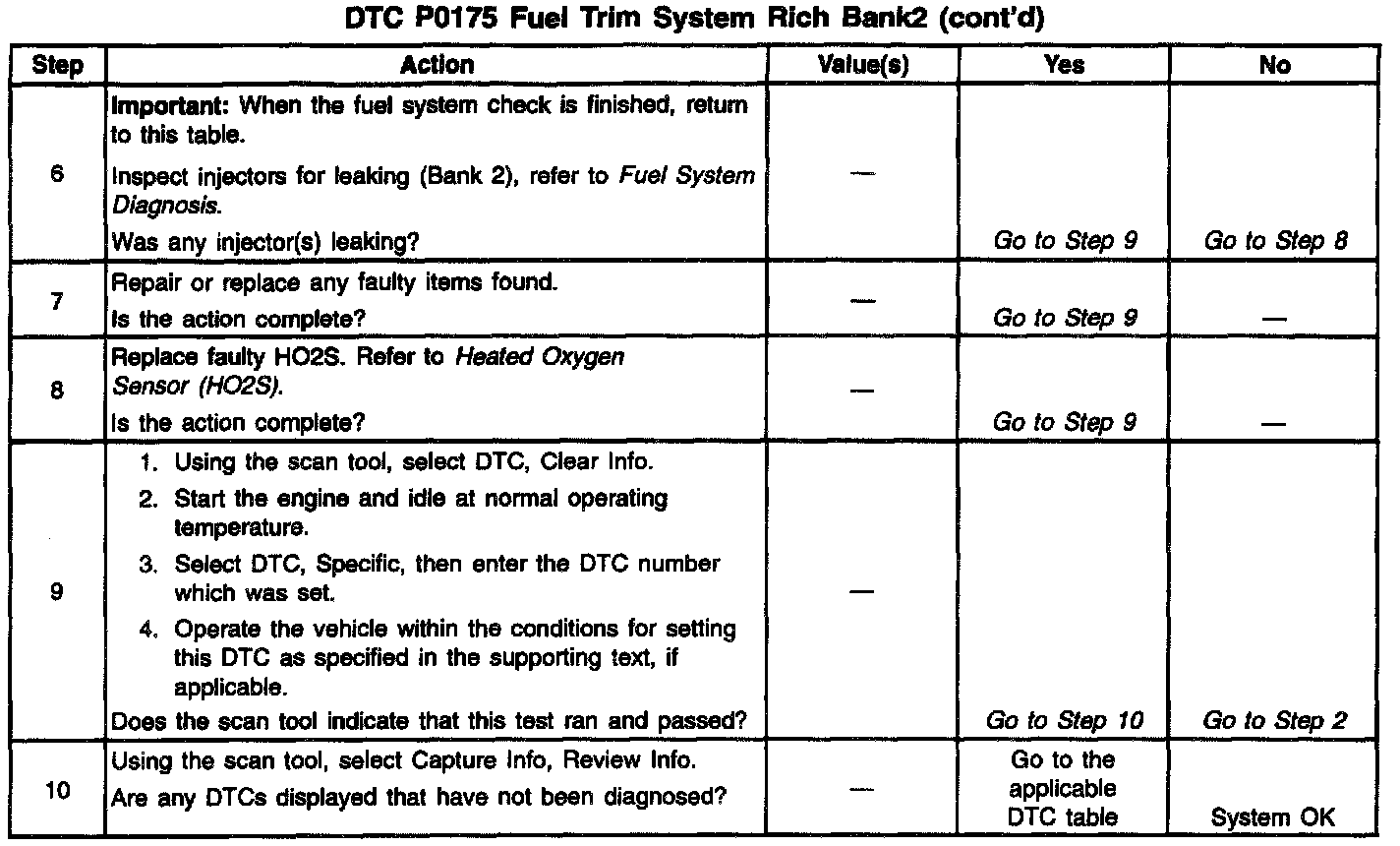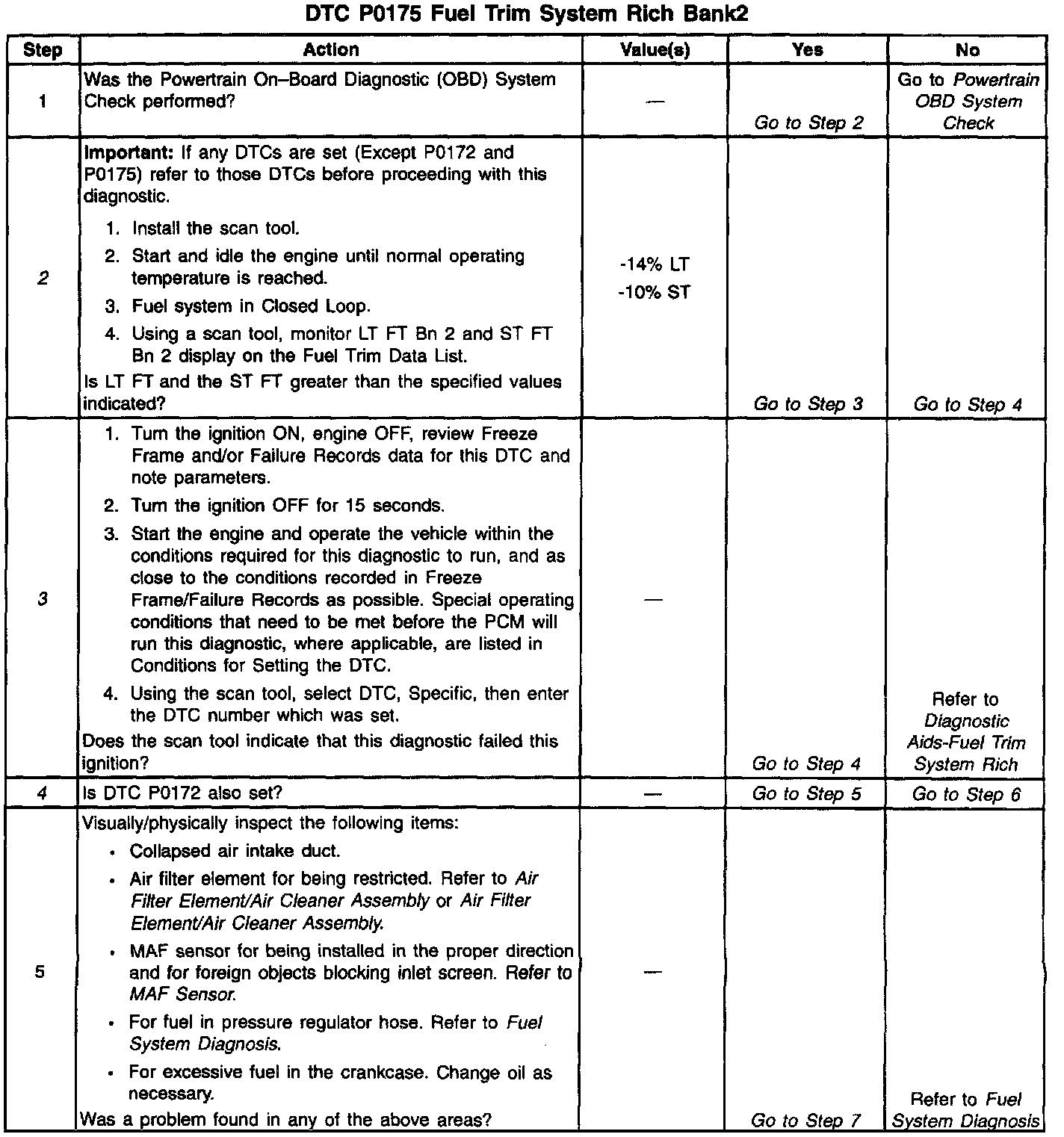 4. It DTC 172 is also set, then both banks are operating rich. Inspect items that would cause both banks to operate rich.