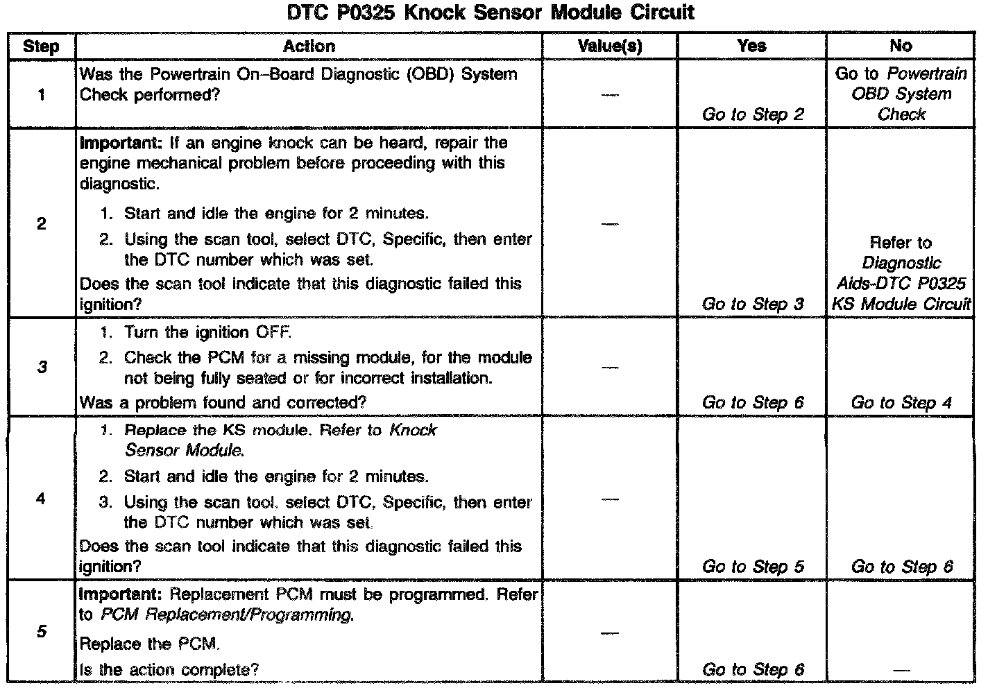 5. If the PCM is at fault, the original KS module must be installed in the new PCM.