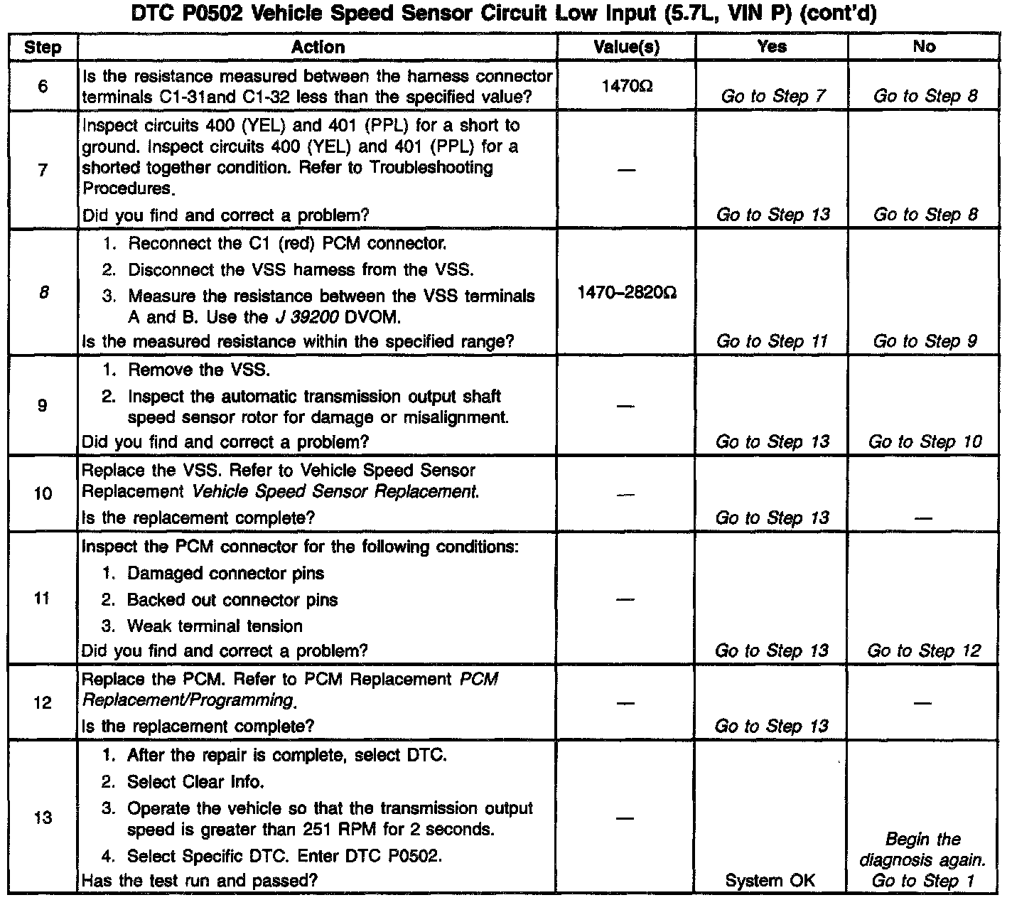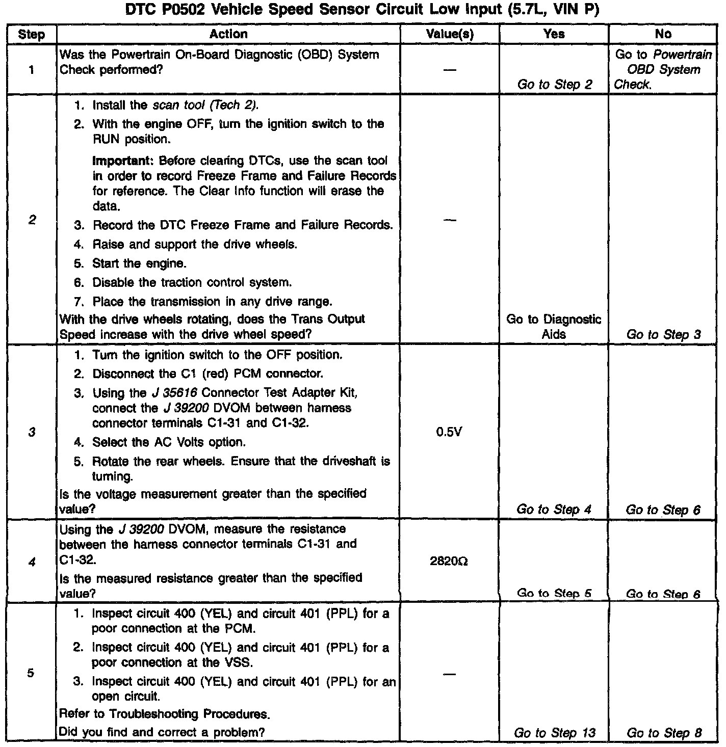- Incorrect VSS calibration may set DTC P502. Refer to service bulletins to ensure that the calibration is current.