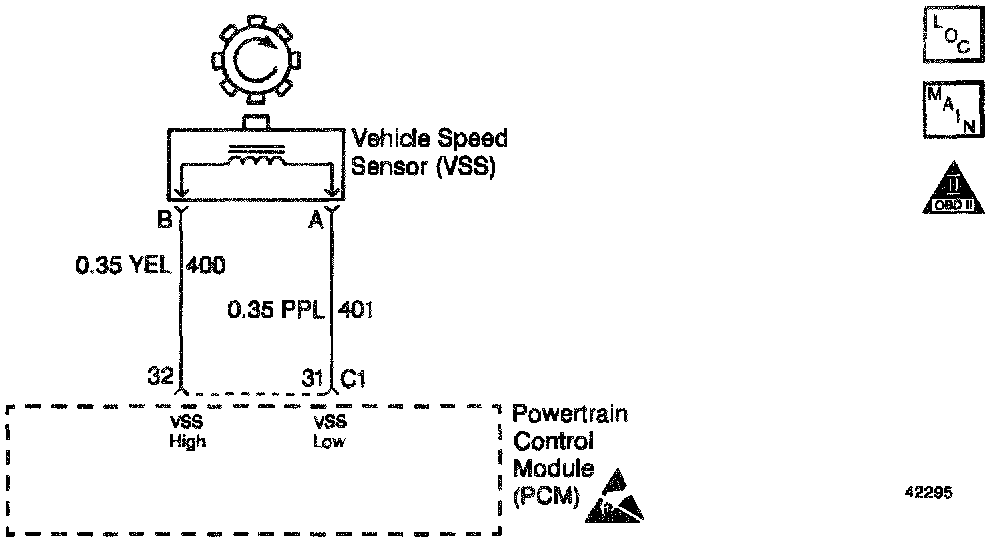 The Vehicle speed Sensor (VSS) provides vehicle speed information to the PCM. The VSS is a Permanent Magnet (PM) generator. The VSS produces a pulsing AC voltage. The AC voltage level and the number of pulses increase as the speed of the vehicle increases. The PCM converts the voltage pulses to vehicle speed. A scan tool can display the calculated vehicle speed. If the PCM detects a low vehicle speed when there is a high engine speed in a drive gear range in two consecutive ignition cycles, then DTC P0502 sets. DTC P0502 is a type B DTC.