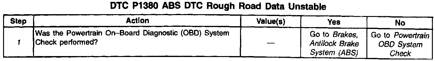 1. The ABS system must be serviced before diagnosing for misfire, because actual engine misfire may or may not exist. The following two examples illustrate how this DTC can be set with or without actual engine misfire: