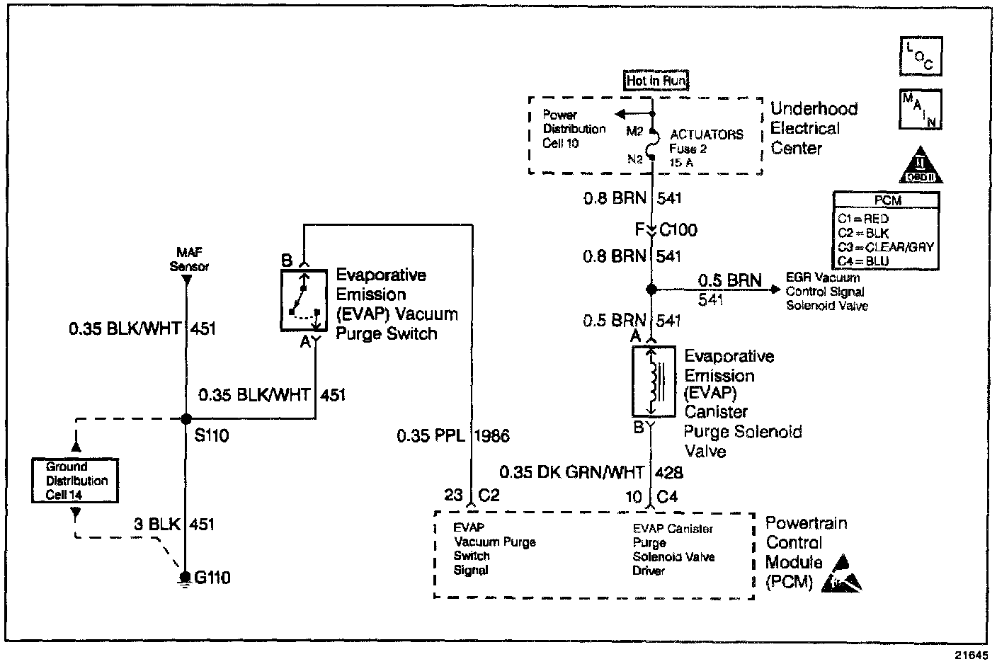 - The PCM detects high signal voltage on the EVAP vacuum switch signal circuit when the PCM is not commanding purge ON.