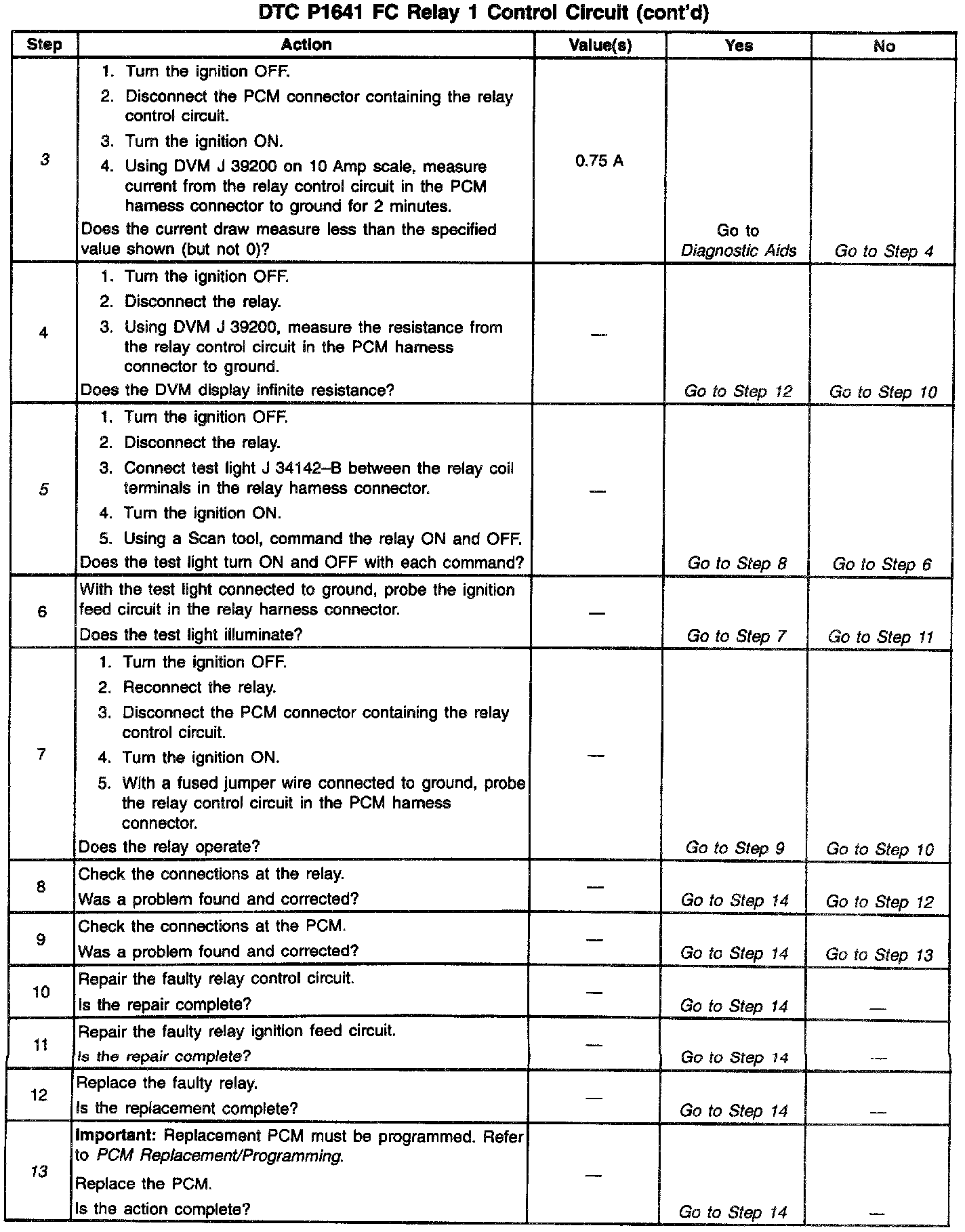 13. If no trouble is found in the control circuit or the connection at the PCM, the PCM may be faulty, however, this is an extremely unlikely failure.