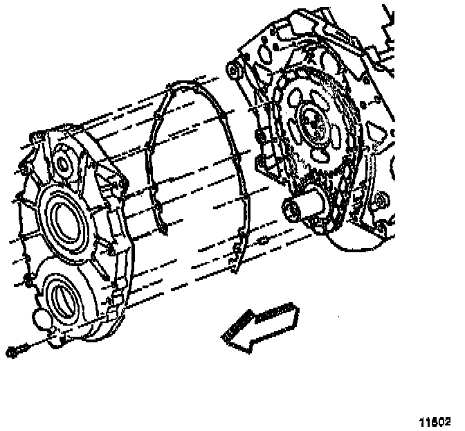 12. Inspect the [1][2]engine front cover for damage to the oil seals or the gasket surface.