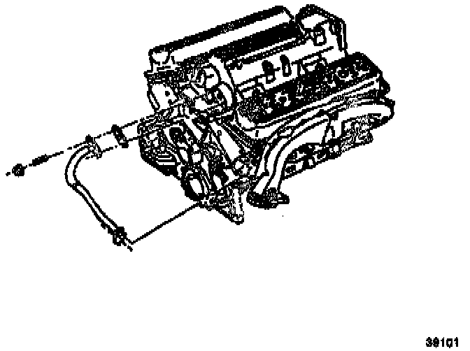 a. Remove the secondary air injection pipe and check valve from the left exhaust manifold. Do not remove the check valve fronts the pipe unless necessary.