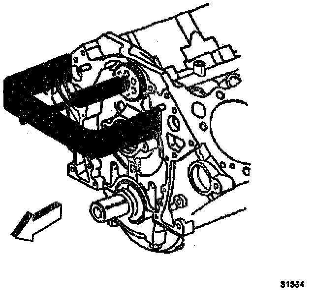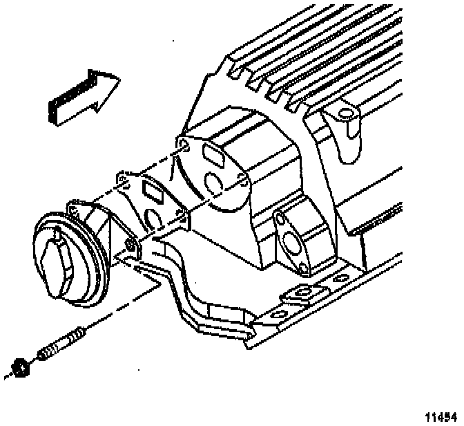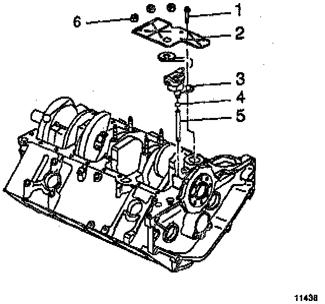 b. Remove the bolt (1) that attaches the oil pump to the rear crankshaft bearing cap.