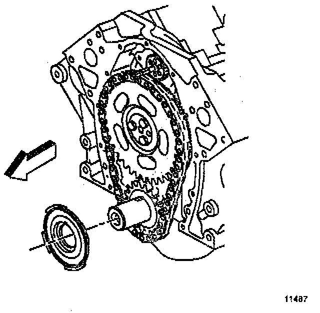 ^ Index the pilot in the rear camshaft bearing in order to remove the rear inner camshaft bearing.
